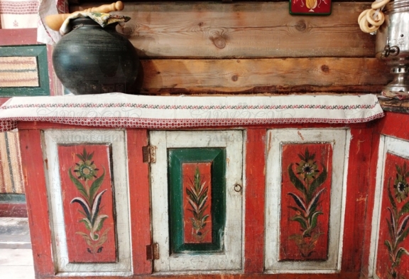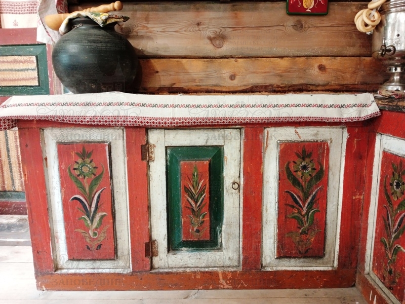 Длинный глухой стол с дверцей и полками внутри для хранения посуды и кухонных принадлежностей.